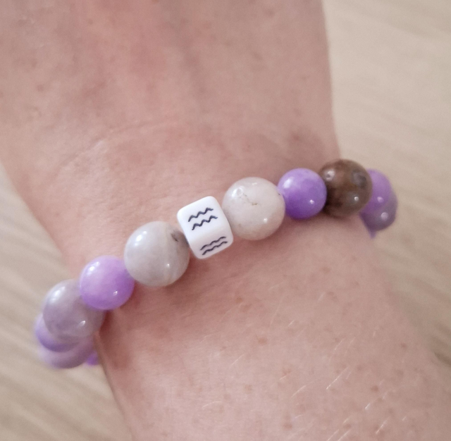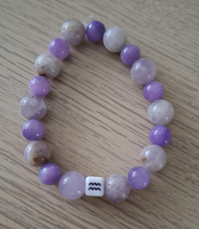 Aquarius beaded bracelet. Crystal beads, I think they are kunzite. Mix of 8 and 10mm beads. 16cm and elasticated.