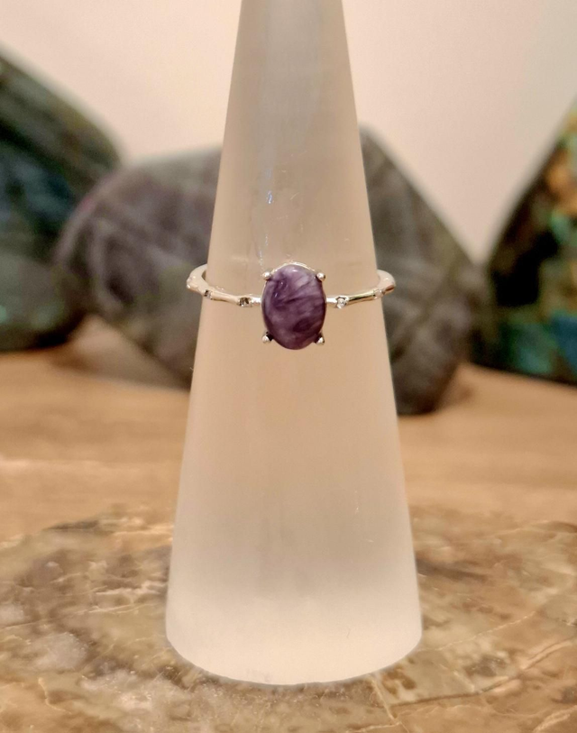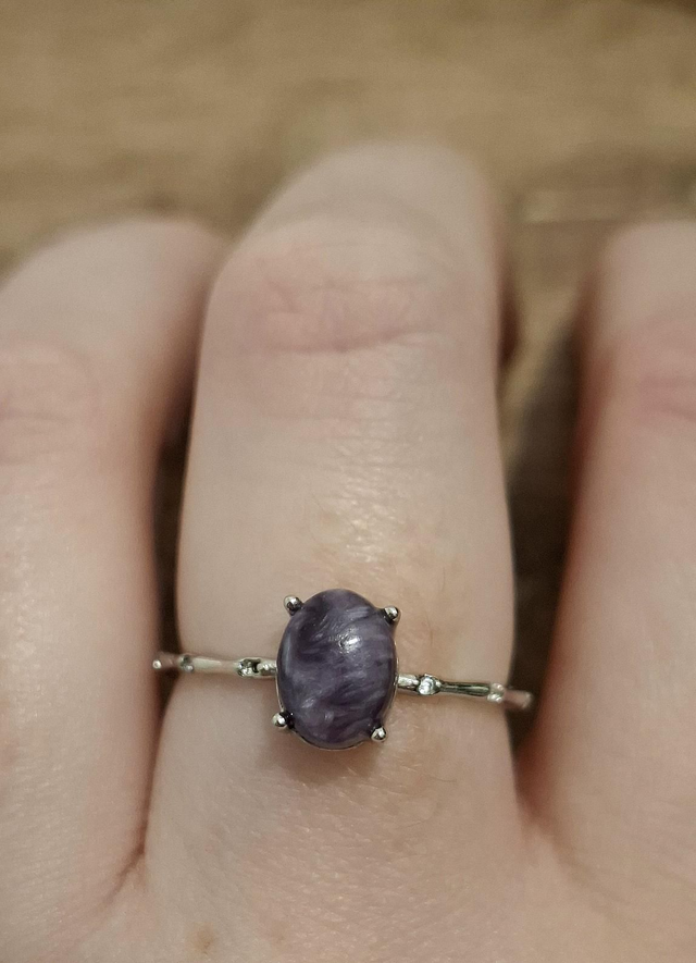 Beautiful Charoite ring. 925 Sterling Silver and adjustable.
