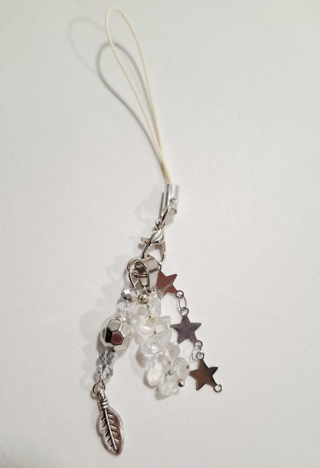 Phone charm designed and assembled by me! With clear quartz beads and star charm details.