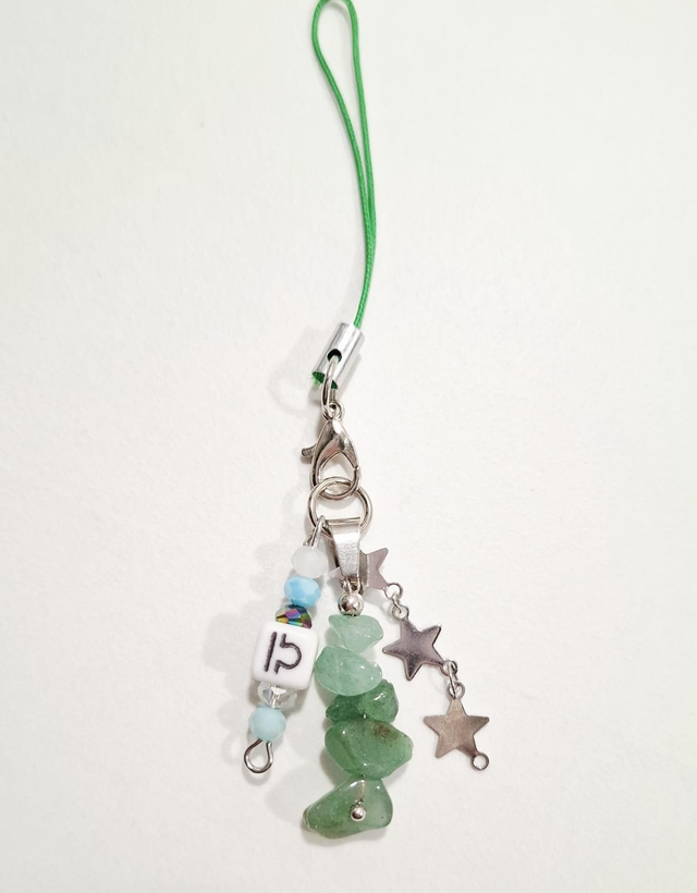 Phone charm designed and assembled by me! With green aventurine beads, Libra zodiac bead and star charm details.