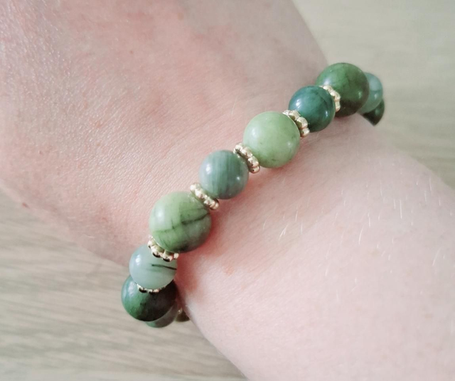 Silver metal bookmark with green aventurine chips Mini jar charm