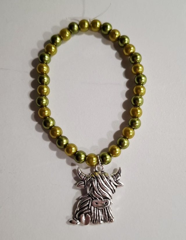 17cm elasticated bracelet with metal Highland cow charm and brown 6mm beads. Super cute and perfect for Highland cow lovers!