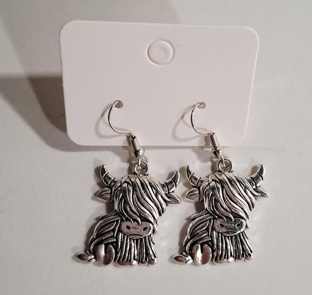 Highland cow silver drop earrings