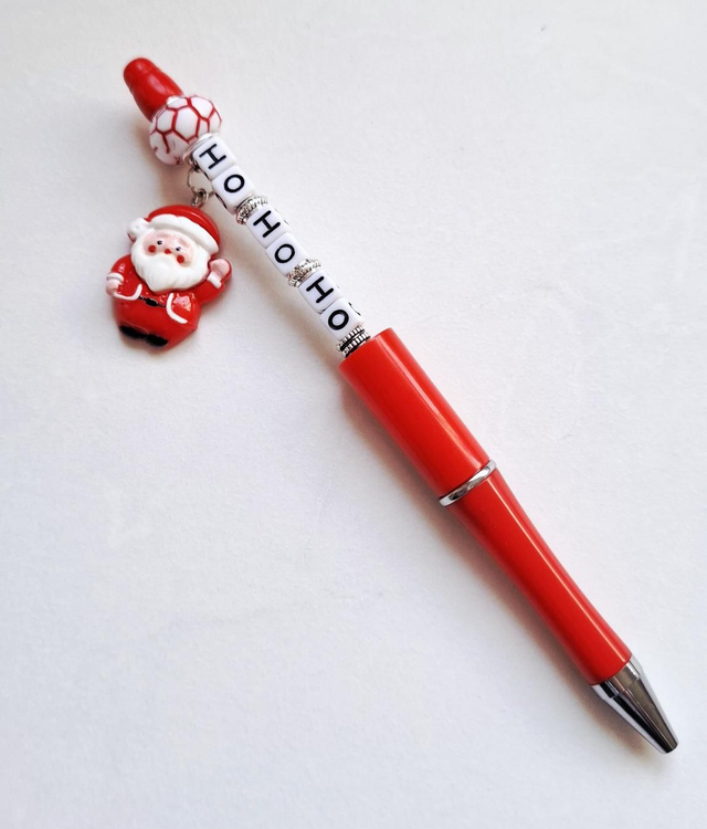Beaded Christmas themed pen with black ink and Santa charm. Designed and assembled by me!
