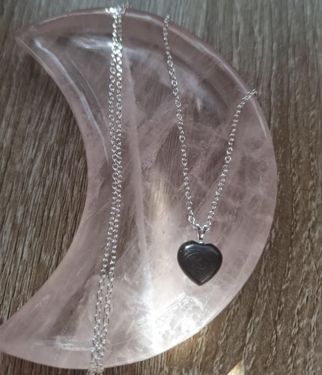 Hypersthene small heart pendant with 925 silver hook and 18 inch silver plated chain. Has a silver sheen.