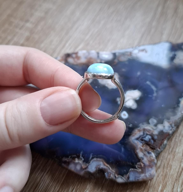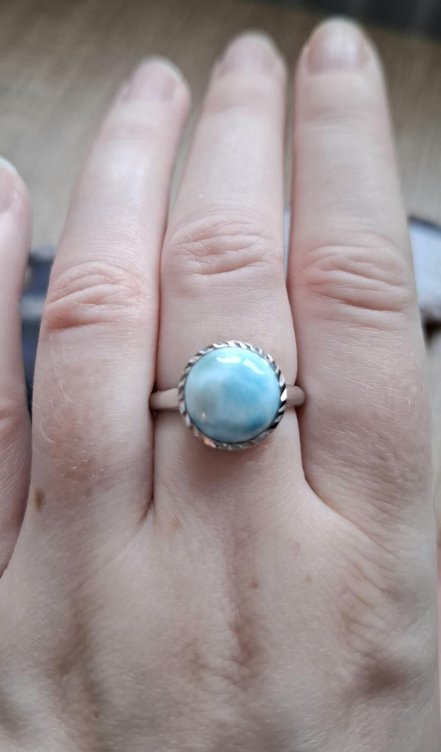Brand new beautiful quality Larimar ring. see photos for details. It is adjustable and the high quality larimar stone is set in a 925 silver band.