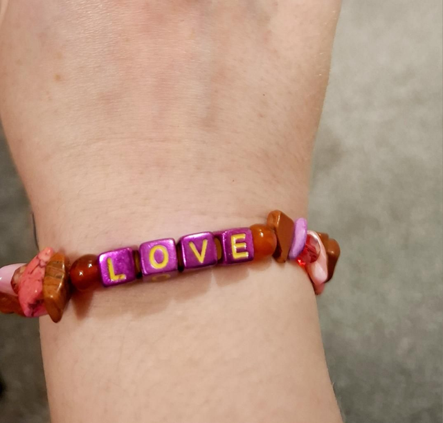 Beaded bracelet with mixed media beads. 17cm and elasticated.