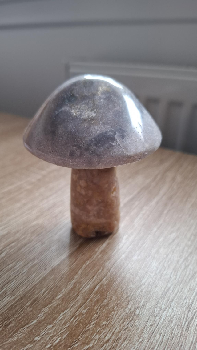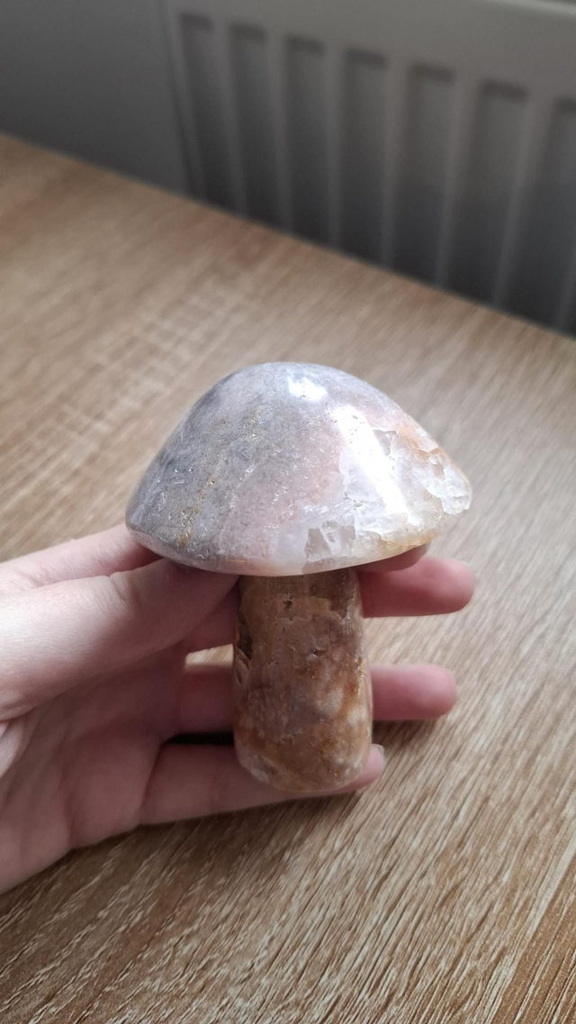 Pink Amethyst mushroom with lovely colouring and tiny sparkle druzy pockets. 9cm tall.