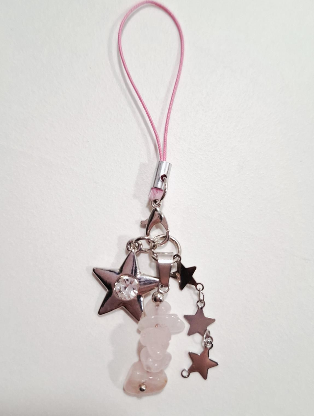 Phone charm designed and assembled by me! With rose quartz beads and star charm details.