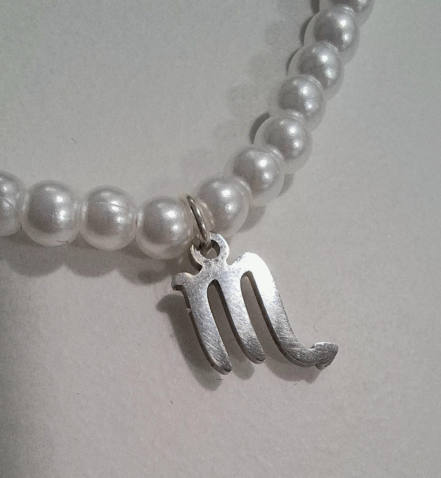 Dainty zodiac bracelet with small pearl white acrylic beads and silver metal zodiac charm. 17cm and elasticated.