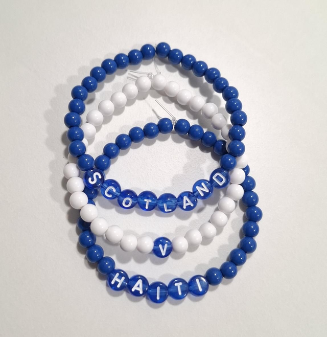 Get ready for the world Cup with this set of 3 bracelets. 17cm and elasticated as standard. If you would like a different size, please confirm in the notes at checkout.