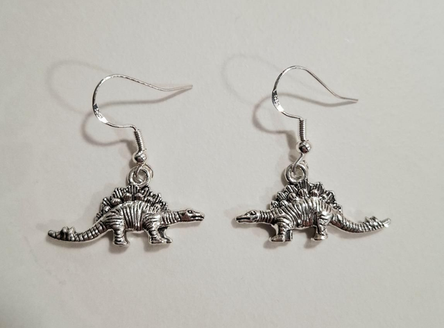 Cute stegosaurus silver metal earrings with s925 silver plated hooks.