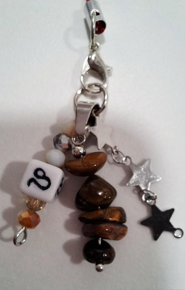 Phone charm designed and assembled by me! With Tiger's Eye beads, Leo bead and star charm details.